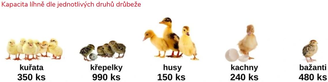 Odpověď: CIMUKA HB350S zvládá až 350 vajec, digitálně reguluje teplotu i vlhkost a automaticky otáčí vejce pro optimální líhnutí.