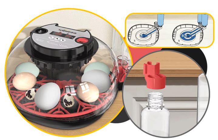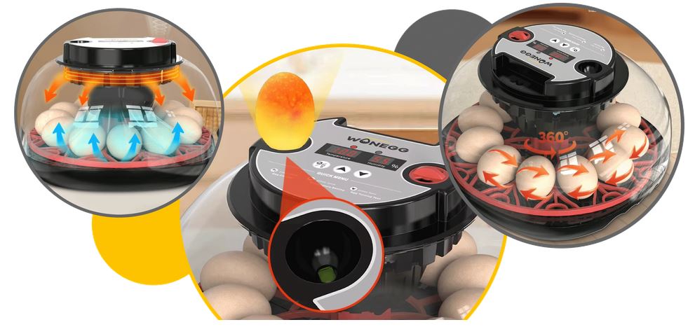 - Automatické otáčení vajec: Vajíčka se automaticky otočí každé 2 hodiny, což napodobuje přirozený proces líhnutí a zabraňuje přilepení embrya na stěnu vejce.