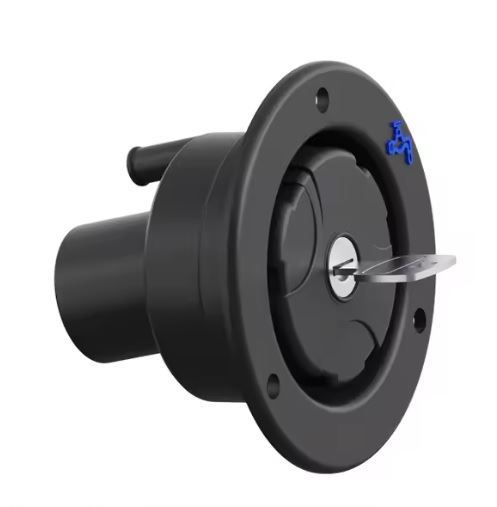 Plnící hrdlo, uzávěr na vodu pro karavany, uzamykatelné černé, 2 klíče