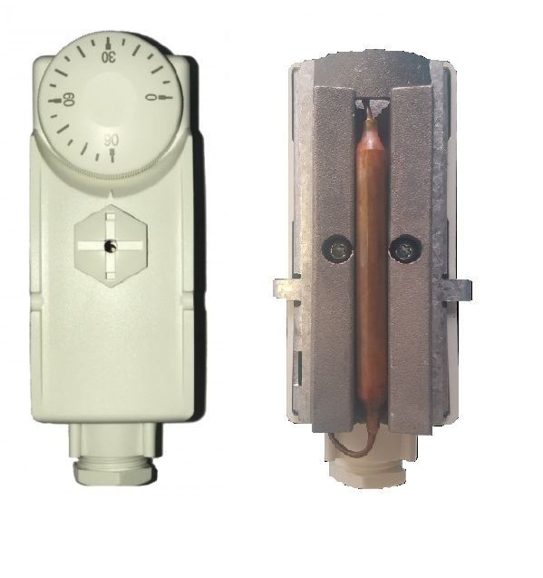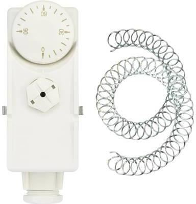 Příložný termostat s rozsahem řízení teploty 0–90°C je vhodný zejména pro nastavení teploty vody v potrubí topných zařízení, zároveň jej lze využít k ovládaní oběhového čerpadla.