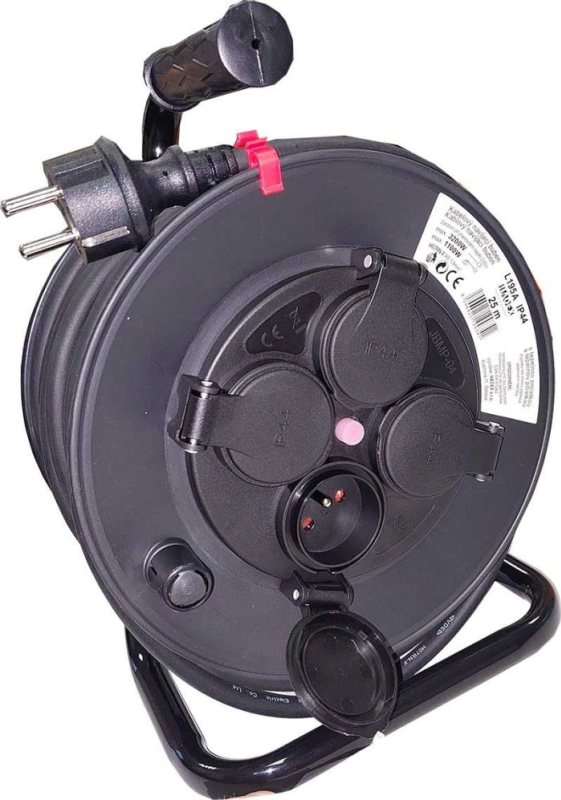 Prodlužovací přívod 25m - naviják, 3x1,5mm2, krytí IP44, guma