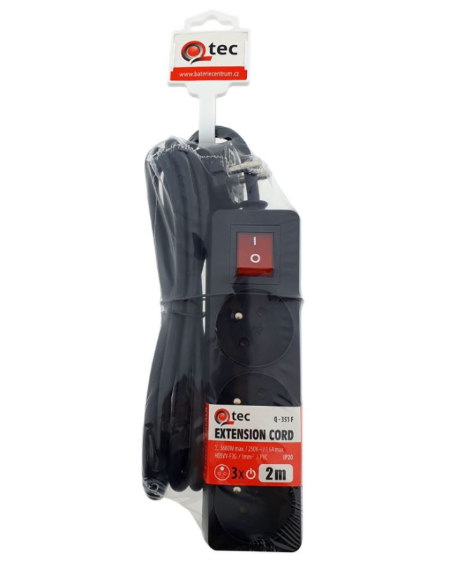 Prodlužovací přívod 2m-3x10A + vypínač, 3x1mm2, černá, QTEC Q-351F