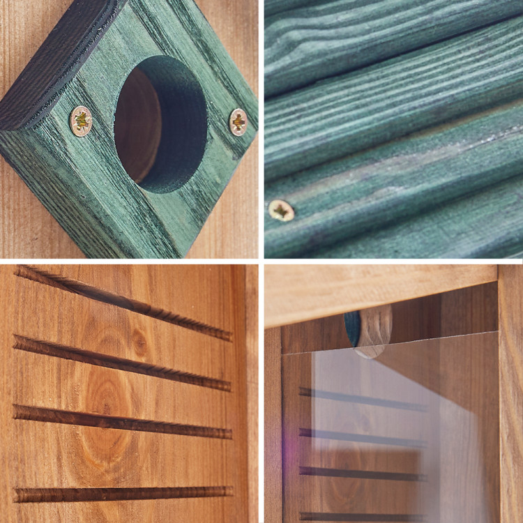 Hnízdní budka od AGROFORTELu je vyrobena z kvalitního masivního dřeva o tloušťce 17 mm. Budka je natřena ekologicky nezávadnou a netoxickou lazurou v zelenohnědé barvě a je tedy odolná vůči povětrnostním vlivům.