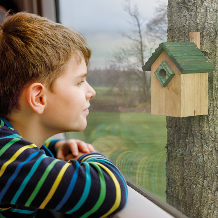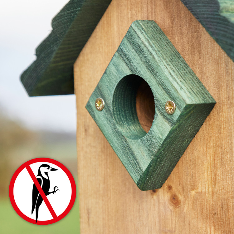 - Díky předvrtanému otvoru pro zavěšení lze ptačí budku snadno zavěsit na vaši zahradu.