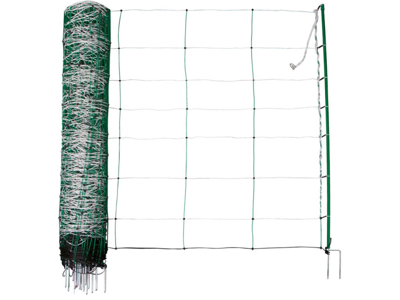 Síť pro elektrický ohradník pro ovce, výška sítě 108 cm, délka sítě 50 m, robustní plastové tyčky s dvojitým hrotem. Hledáte praktickou vodivou síť ke konstrukci elektrického ohradníku pro ovce? Pak máme perfektní řešení! Vodivá síť je skvělým a jednoduchým pomocníkem pro vymezení výběhu pro chov stádo ovcí. Ochranná síť nejen zamezí úniku ovcí, ale také ji chrání před predátory. Síť můžete použít k oplocení jakéhokoliv prostoru a vytvořit tak velmi rychle a jednoduše bezpečný prostor pro chov ovcí. K vodivé síti je možné napojit zdroj a tím vytvořit elektrický ohradník.
