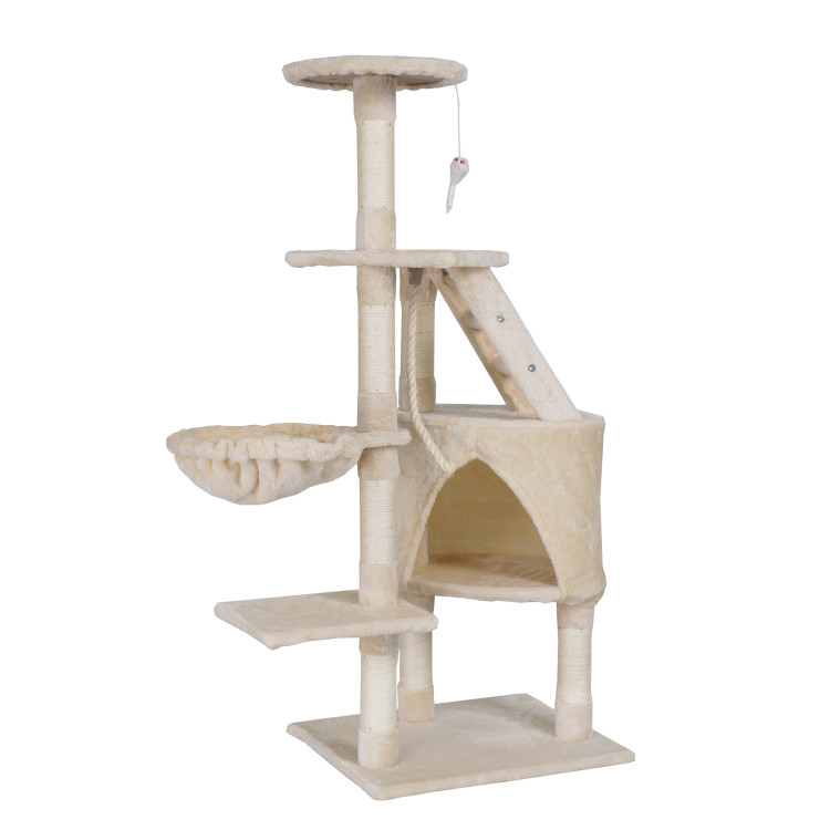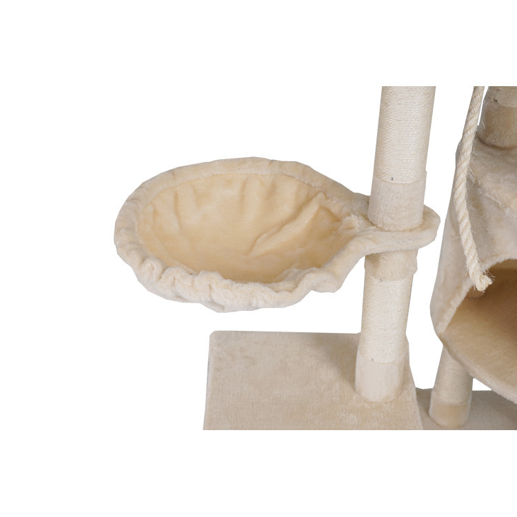 Škrábe vám Váš chlupatý mazlíček sedačku a šplhá po záclonách? S naším vymazleným škrabadlem už nebude! Dopřejte své kočičce luxusní útočiště. Toto víceúrovňové škrabadlo je dokonalou kombinací komfortu, bezpečí a zábavy, díky čemuž splní všechny potřeby vaší kočičky. Nabízíútulný domeček, tři vyvýšené plošiny, myšku a lano na hraní, houpací síťa sisalové škrábací sloupky. Moderní design v béžovém provedení skvěle doplní váš interiér.