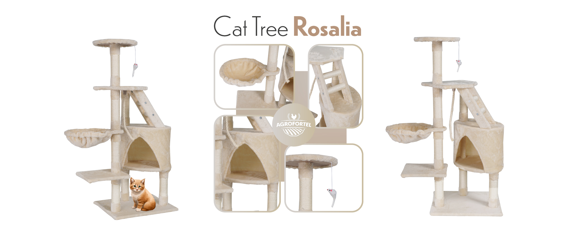 Škrabadlo pro kočky Rosalia, s více úrovněmi a hračkami – Luxusní zábava a relaxace pro vašeho mazlíčka