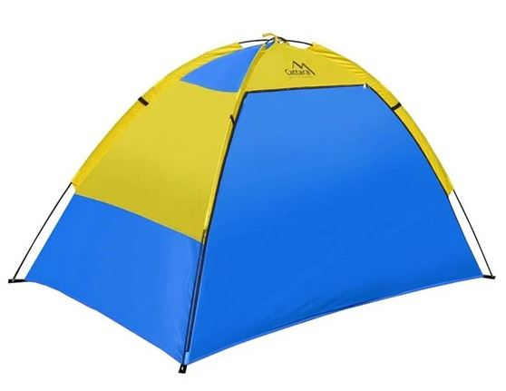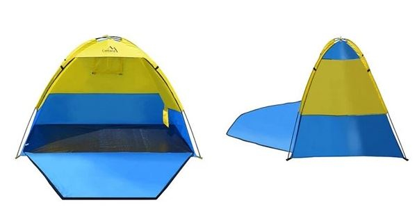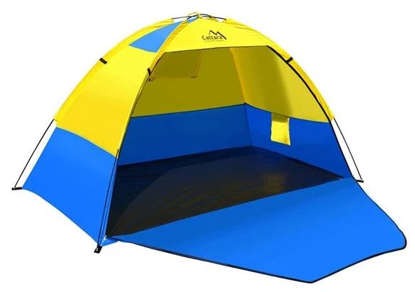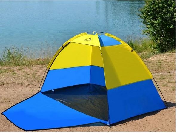 Plážový stan o rozměrech 200 x 120 x 120 cm, vhodný na místa kde je potřeba vytvořit stín ve slunečném letním počasí, např. na pláže a zahrady.