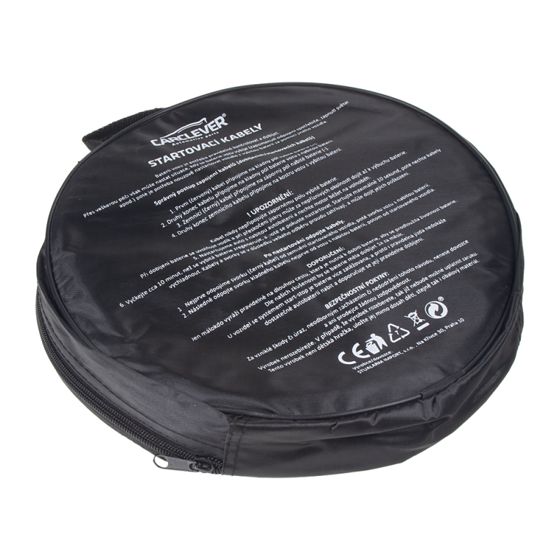 Kabely jsou barevně označené zakončeny izolovanými svorkami na akumulátor pro bezpečnost při startování. Kabely se ukládají do praktického na zip uzavíratelného obalu.