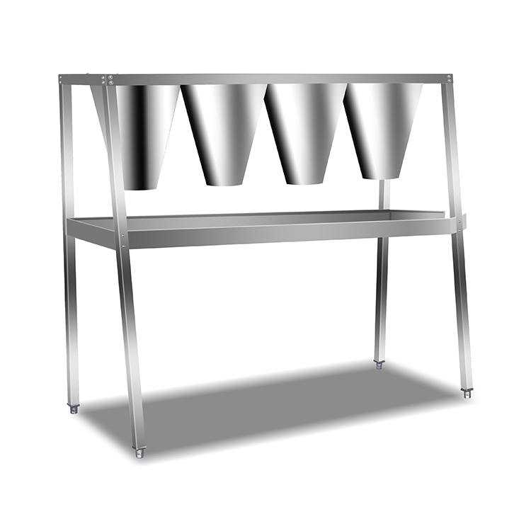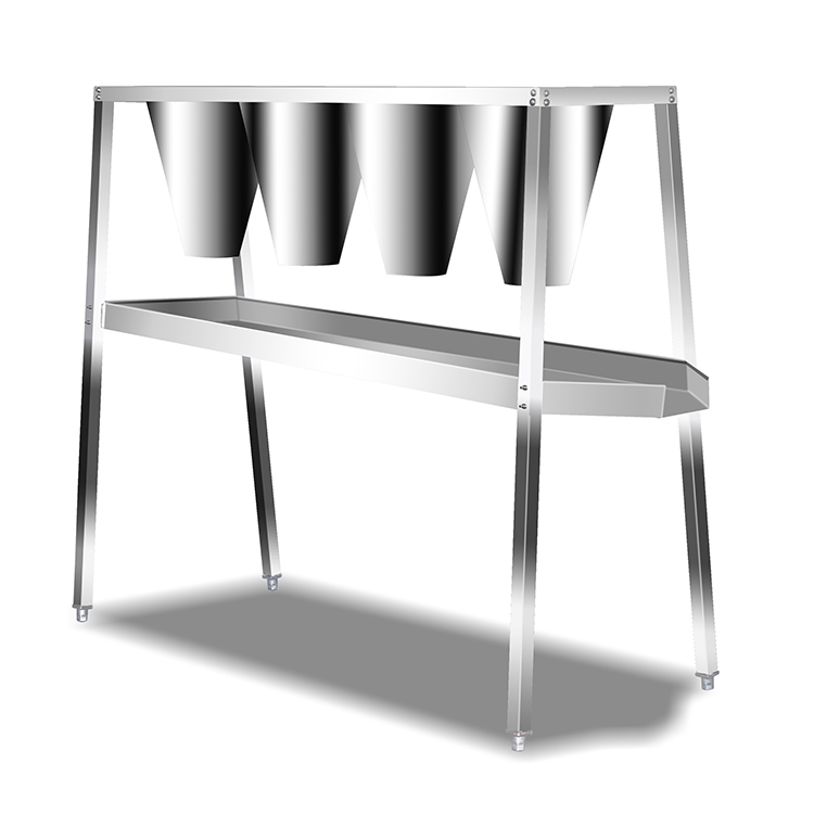 Tento stojan vám pomůže zefektivnit proces porážky drůbeže. Díky 4 vykrvovacím trychtýřům můžete zpracovat až 4 kusy drůbeže najednou. Spodní část stojanu je opatřena praktickým žlabem pro odvod krve, pod jehož odtok lze umístit vědro (není součástí balení). Celý proces je tak mnohem hygieničtější.