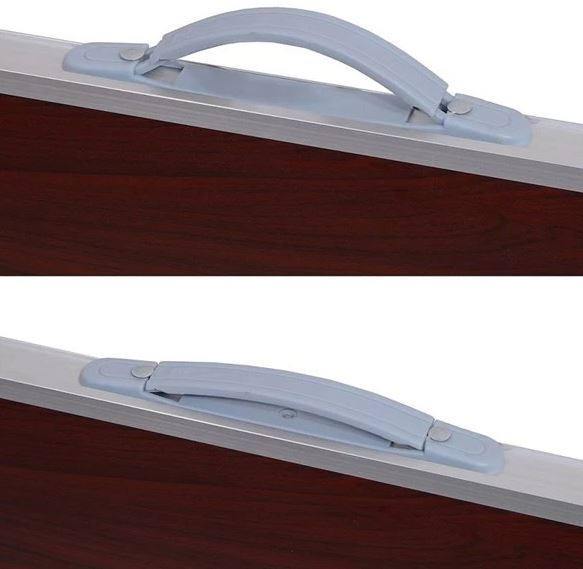 Pro své rozměry 80 x 60 x 4 cm a hmotnost 3,8 kg ve složeném stavu, je stůl skladný a je možné ho přenášet, díky prakticky umístěnému madlu na boku desky.
