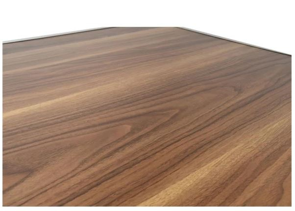 Stůl Double je skládací, teleskopický stůl z Aluminia, s rovnou plochou a vzorem kvalitně imitujícím dřevo.