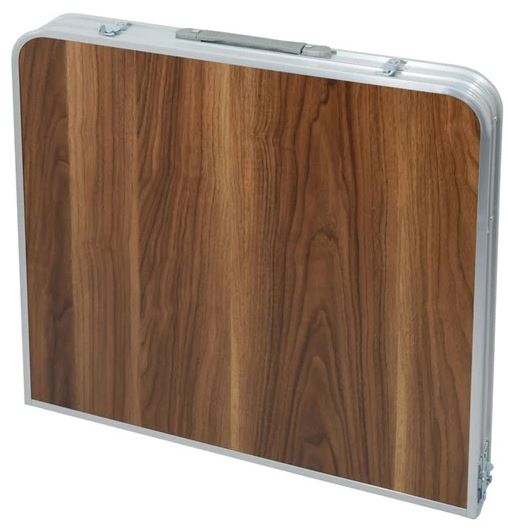 Pro své rozměry 60 x 60 x 6,5 cm a hmotnost 4,7 kg ve složeném stavu, je stůl skladný a je možné ho přenášet, díky prakticky umístěnému madlu.
