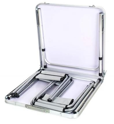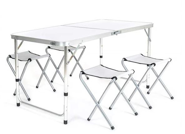 Kampingová sada BILBAO obsahuje stůl s konstrukcí z hliníku o rozměrech 120 x 60 cm s nastavitelnou výškou 70 / 62 / 55 cm a 4 ocelové stoličky o rozměrech 33 x 31 x 35 cm. Sada je vhodná pro kemping, cestování, outdoor, ale i na zahradu. Její nespornou výhodu je složení do kufříku o rozměrech 62 x 7,5 x 63 cm pro snadné přenášení. Nosnost stoliček je 100 kg.