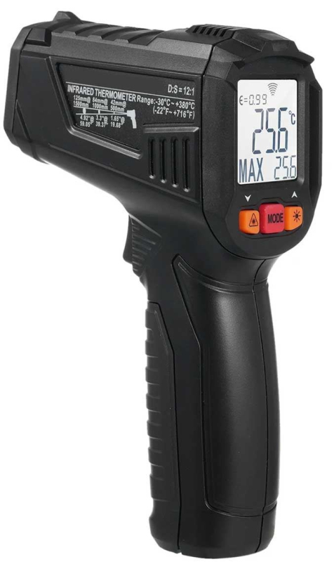 Bezdotykový infračervený teploměr je určen k měření teploty povrchu horkých, nebo špatně přístupných objektů. Měření teploty bezdotykovým teploměrem je založeno na principu vyhodnocování tepelného záření těles. Teploměr snímá vyzařované tepelné vlnění vystupující z povrchu materiálu.