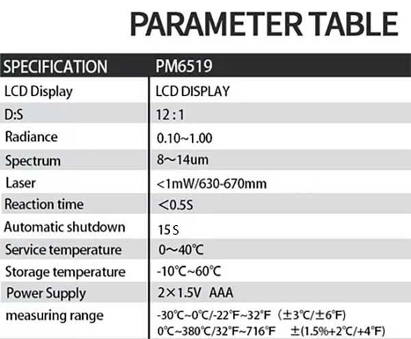 - emisivita nastavitelná od 0,1 do 1,0