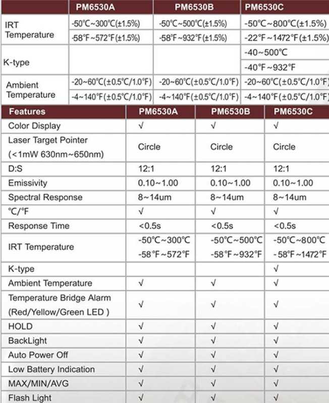 Teploměr bezkontaktní PEAKMETER PM6530C -50~800°C /Infrateploměr/