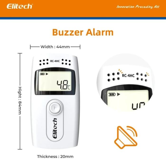 Datalogger Elitech RC-4 měří teplotu. Teplotu lze měřit pomocí interního čidla nebo externího drátového čidla. Naměřené hodnoty ukládá do interní paměti. Pomocí software pak snadno data stáhnete a vyhodnotíte. Na překročení teploty vás přístroj upozorní na displeji a zvukovým alarmem.