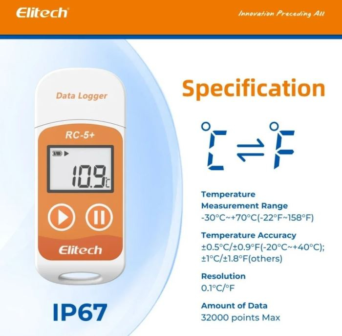Teploměr Elitech RC-5+ - USB Datalogger, certifikát