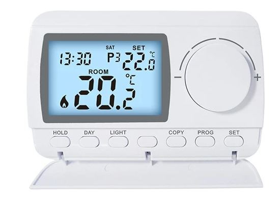 Termostat nabízí týdenní programování se 6 teplotními změnami denně, což umožňuje efektivní řízení vytápění či chlazení podle vašich denních návyků. Přehledný displej s jasným bílým podsvícením zajišťuje výbornou čitelnost i za špatných světelných podmínek. Samozřejmostí je i funkce proti zamrznutí a indikace vybité baterie, která vás včas upozorní na nutnost výměny.