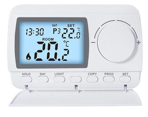 Moderní programovatelný drátový termostat GRT04 je ideální volbou pro efektivní regulaci vytápění i chlazení. Nabízí týdenní programování se 6 teplotními změnami denně, přehledný podsvícený displej s bílým podsvícením a přesné nastavení teploty v rozsahu 5 až 40 °C. Termostat je vybaven funkcí proti zamrznutí, možností spínání 230 V AC i beznapěťovým kontaktem a napájen je dvěma bateriemi AA, které jsou součástí balení. Díky elegantnímu bílému provedení zapadne do každého interiéru.