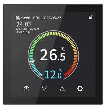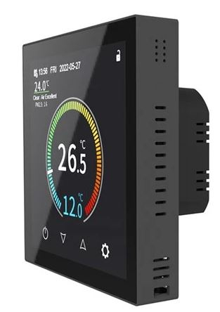 Moderní pokojový termostat GETI GRT05B je určen pro přesnou regulaci vytápění nebo klimatizace v domácnostech i kancelářích. Díky vestavné instalaci (pod omítku) a elegantnímu designu s podsvíceným TFT IPS dotykovým displejem (480×480 px) nabízí intuitivní ovládání přímo na panelu i možnost chytrého řízení na dálku přes mobilní aplikace Smart Life a Tuya (Android/iOS). Termostat je vhodný jak pro odporové zátěže (např. přímotopy) až do 16 A, tak pro indukční zátěže do 3 A, což z něj dělá univerzální řešení pro různé topné systémy.