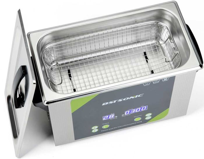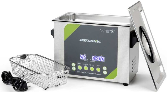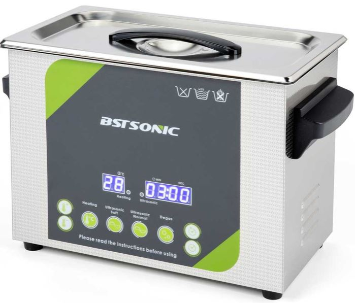 Celokovová ultrazvuková čistička pro univerzální použití vybavená degazačním programem a dvěma stupni výkonu ultrazvukového výkonu.