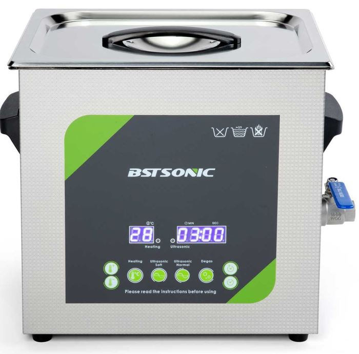 Celokovová ultrazvuková čistička pro univerzální použití s degazačním programem pro zbavení vzduchu z čistícího média a výpustným kohoutem. Použitá nerez SUS304
