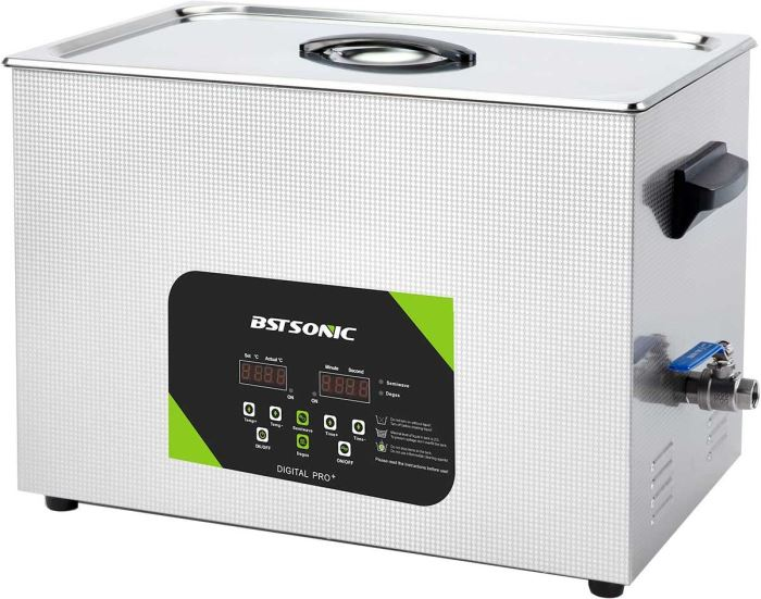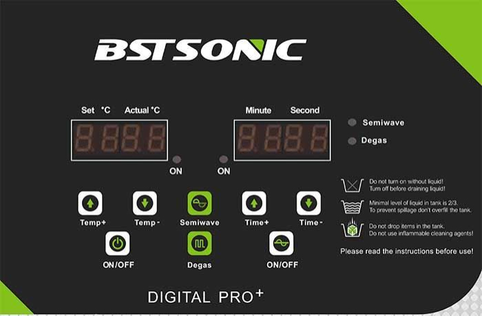 Celokovová ultrazvuková čistička pro univerzální použití s degazačním programem pro zbavení vzduchu z čistícího média a výpustným kohoutem. Použitá nerez SUS304