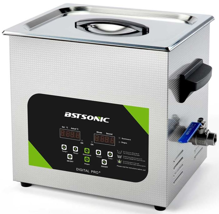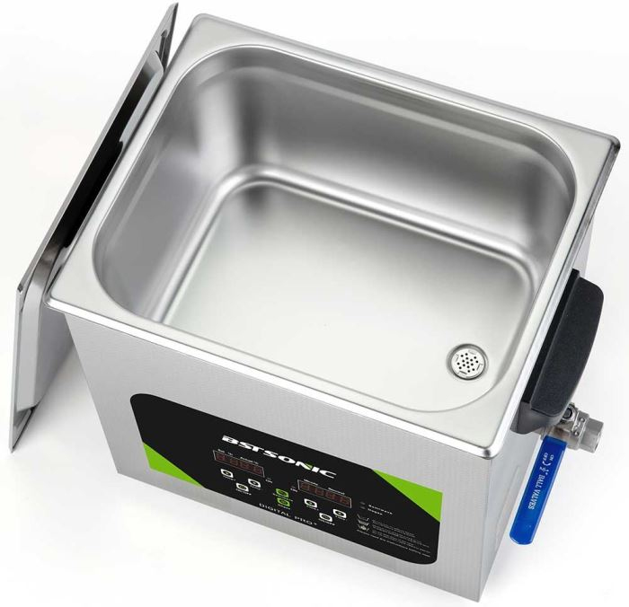 Celokovová ultrazvuková čistička pro univerzální použití s degazačním programem pro zbavení vzduchu z čistícího média a výpustným kohoutem. Použitá nerez SUS304