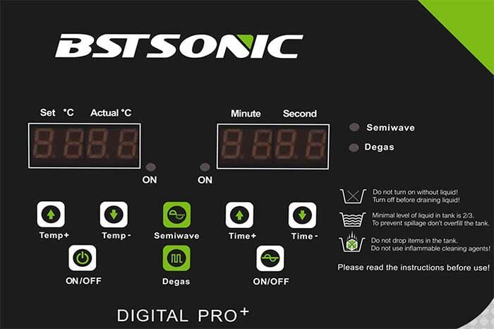 Celokovová ultrazvuková čistička pro univerzální použití s degazačním programem pro zbavení vzduchu z čistícího média a výpustným kohoutem. Použitá nerez SUS304