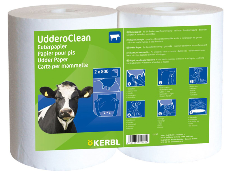 Utěrky na vemena KERBL 15787 UDDEROCLEAN 23x22 cm, 2x800 útržků, bez kartonového jádra, bílé
