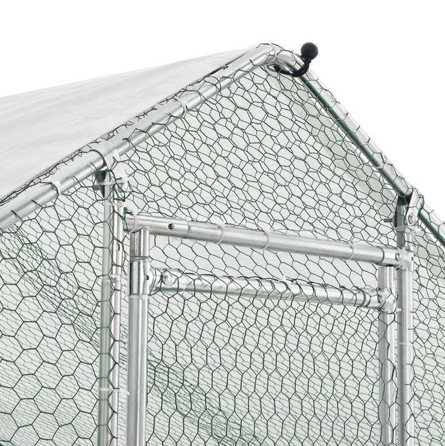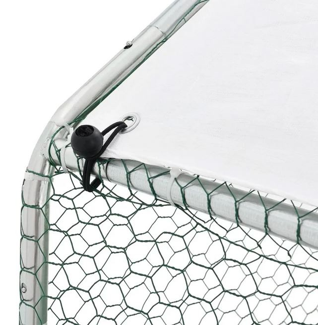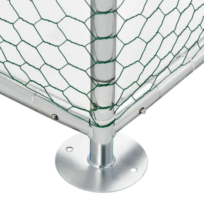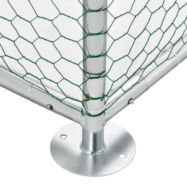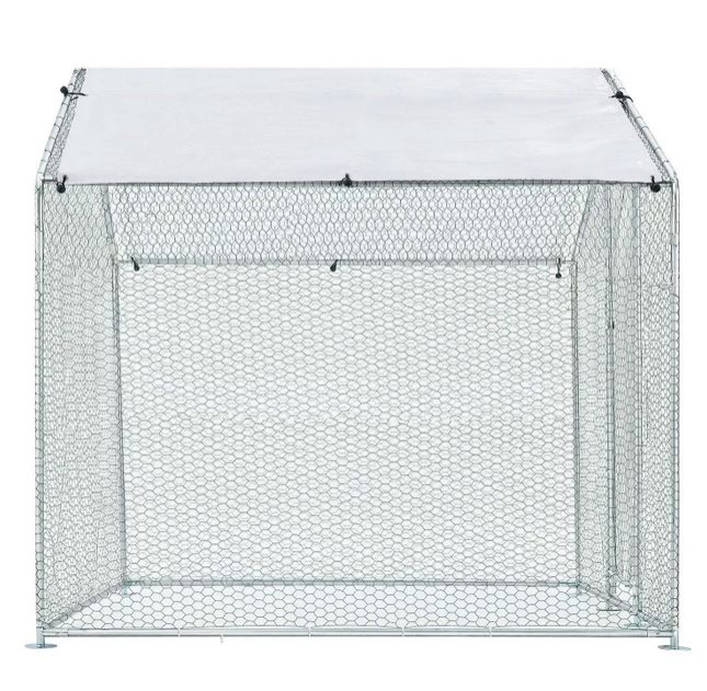 V balení naleznete i kvalitníplachtu z polyethylenu, která skvěle odolává vodě i UV záření, a poskytne tak vaší drůbeži ochranu před sluncem, deštěm, sněhem i dalšími klimatickými podmínkami. Dvířka jsou opatřená zámkem, což zajišťuje větší bezpečnost a ochranu vašich malých zvířat.Do klece lze i přímo umístit kurník. Dvířka jsou uzamykatelná a pletivo je s jemnými oky. Montáž je velmi jednoduchá. Velmi kvalitní a bytelné provedení.