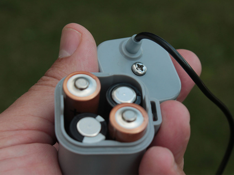 Zařízení je napájeno na 4xAA baterie (nejsou součástí balení). Zařízení je vybaveno praktickým přepínačem umístěným na boční straně, který Vám umožní ovládat jeho provoz podle Vašich potřeb. Doporučujeme použití alkalických baterií, s výdrží minimálně 6 týdnů při neustálém provozu.