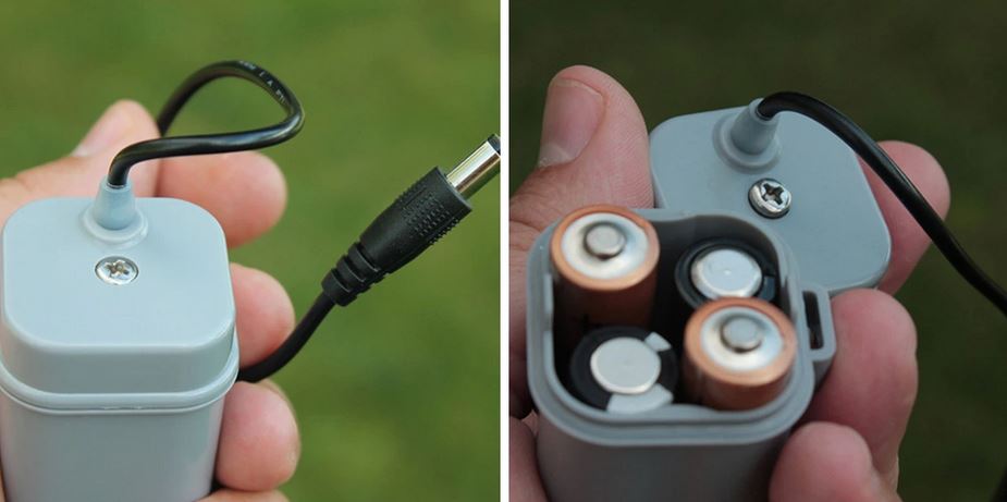 Zařízení je napájeno na 4xAA baterie (nejsou součástí balení). Zařízení je vybaveno praktickým přepínačem umístěným na boční straně, který Vám umožní ovládat jeho provoz podle Vašich potřeb. Doporučujeme použití alkalických baterií, s výdrží minimálně 6 týdnů při neustálém provozu.