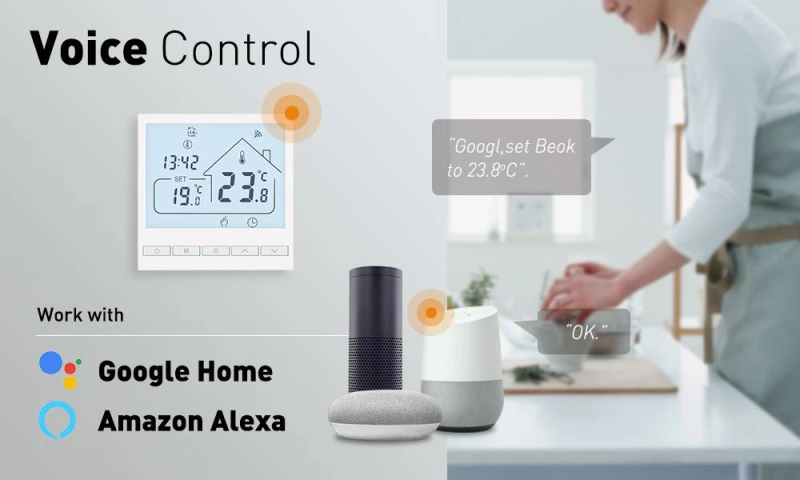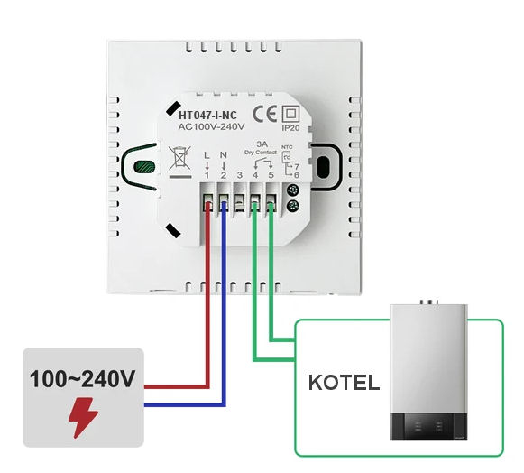 Vhodný k ovládání podlahového topení, přímotopů, topných kabelů, spínání relé elektrokotlů nebo plynových kotlů (spínané síťovém napětím 230V)
