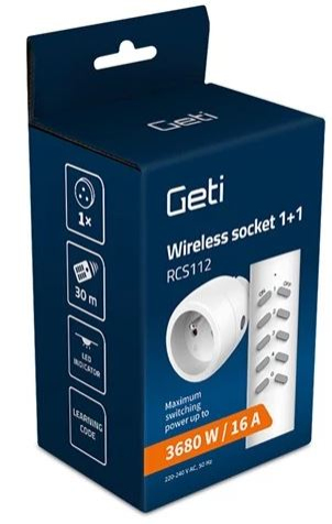 Na tento výrobek poskytujeme 3 roky záruku. Sestava bezdrátově ovládané zásuvky GETI RCS112 obsahuje dálkový ovladač a 1 zásuvku 230V s přijímačem. Je určena pro dálkové zapínání a vypínání elektrických spotřebičů jako jsou světla, televizory, počítače, vánoční osvětlení a podobně. Zejména v místech, kde není snadný přístup např. za skříněmi, je toto řešení ideální. Pomocí dálkového ovladače můžete zapínat a vypínat elektrická zařízení přes nábytek i zdi. Pamatujte na to, že přes různé překážky se dosah zařízení snižuje. Maximální připojená zátěž je 3680 W/16 A. Zásuvku lze ovládat také ručně tlačítkem.