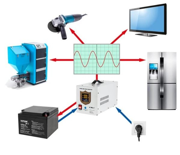 Tyto systémy jsou ideální pro napájení, např. čerpadla ústředního topení nebo čerpadla v instalaci krbů a asynchronní motory, nebo např. automatizace zařízení, která je instalována pomocí tepelných cívek a jakékoliv zařízení, zvláště citlivé na sebemenší změnu napětí. Jejich výhodou je čistý sinusový průběh výstupního napětí (přivádějící zátěž), díky němuž zařízení zajišťuje stabilní provoz a zabraňuje přehřátí indukčních zátěží. Spolu s 12V akumulátorem tvoří kompletní napájecí zdroj zaručující napájení z elektrické sítě 230 VAC.